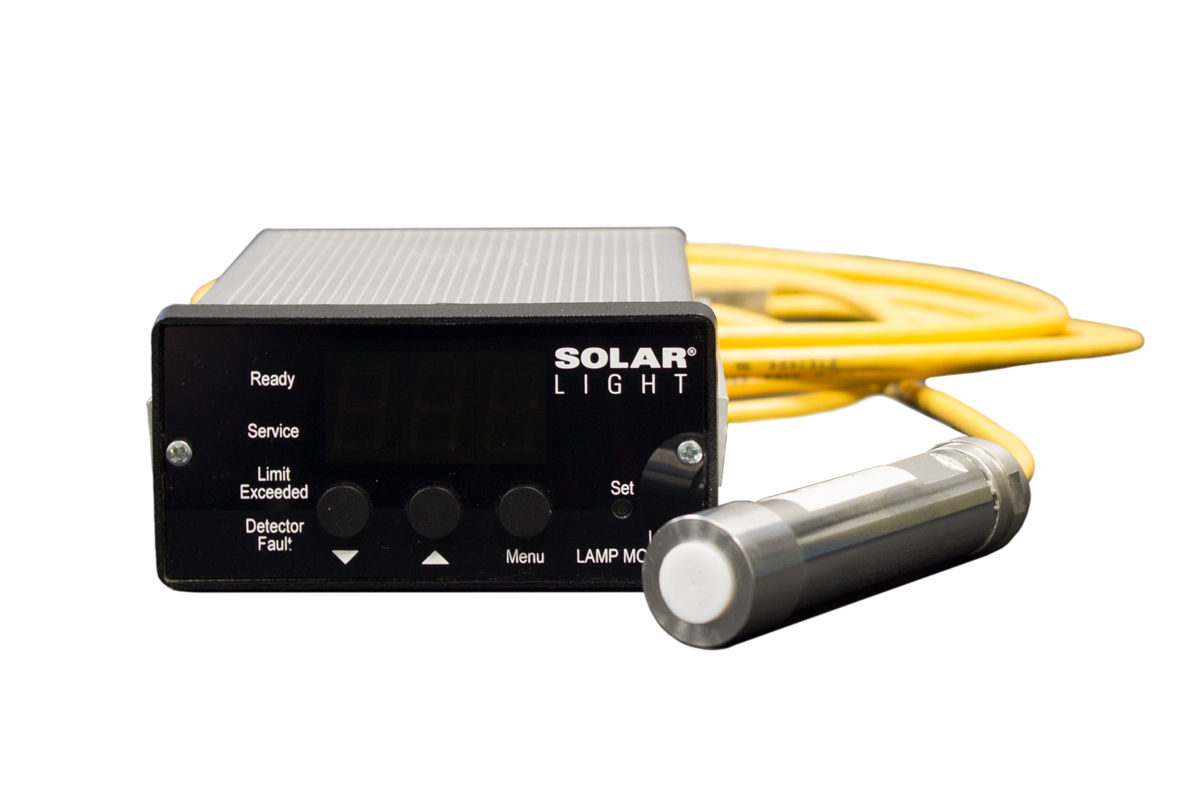Solar Light’s Model GLM100 Germicidal Lamp Monitor System consists of the LM100 lamp monitor and the UW254 Submersible Germicidal Sensor, working together as a system. The LM100 unit can also accept output from any 4-20mA two wire sensor.