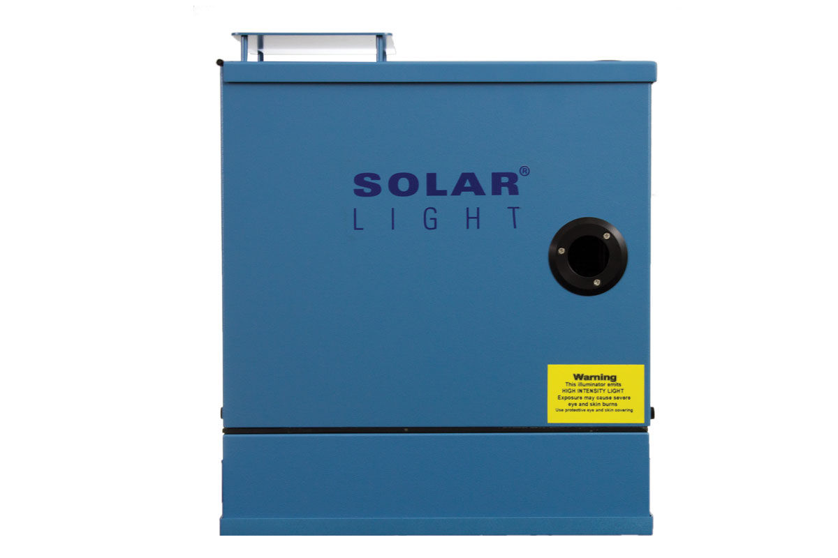 Solar Light’s 300W single output 16S-300-2.2-AM Solar produces a 2.2″ (5.7 cm) spot beam Class A Air Mass 0 and Air Mass 1.5 Emission Spectra to accurately replicate full spectrum sunlight, with 1 sun output intensity and over 90% uniformity in the usable area. The output can be quickly and easily configured by the user to provide UVA only, UVB only, UVA+B, or full spectrum sunlight optionally. These precision research-grade instruments are specifically designed to comply with the latest laboratory standards such as ASTM, IEC, and ISO.